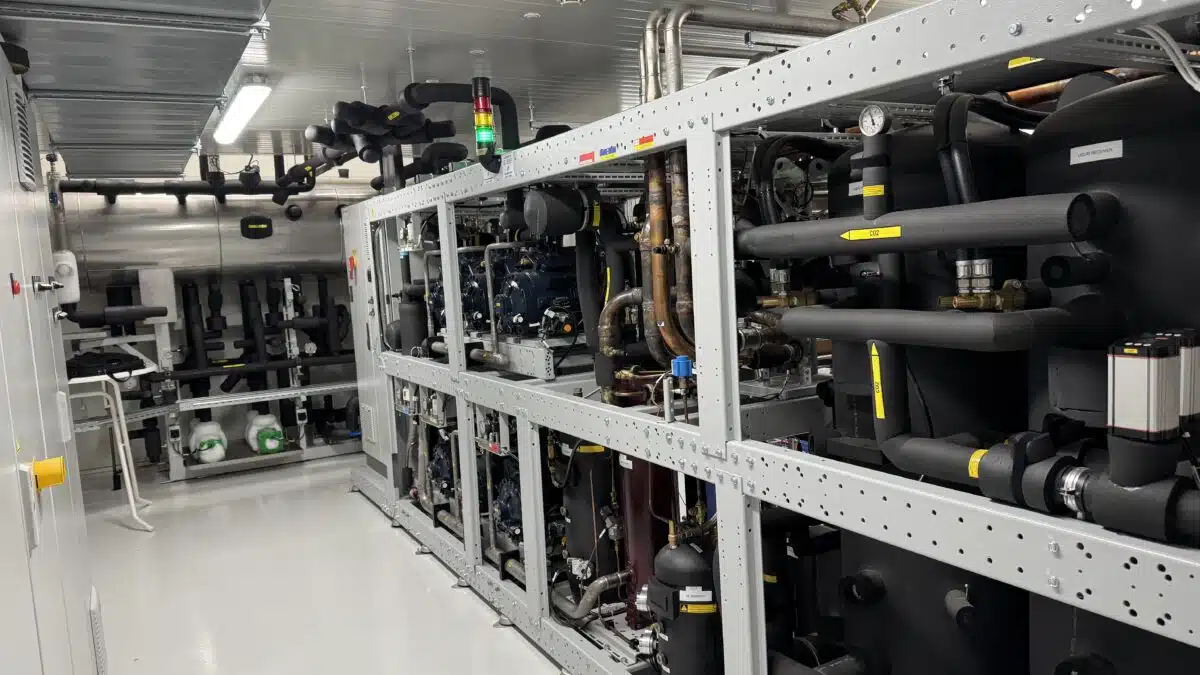 De geleverde koelinstallatie bestaat uit een transkritische CO₂-compressorunit met warmte-terugwinning. Vanwege de variatie in afnemers en temperatuurniveaus is gekozen voor een combinatie van drie systemen: