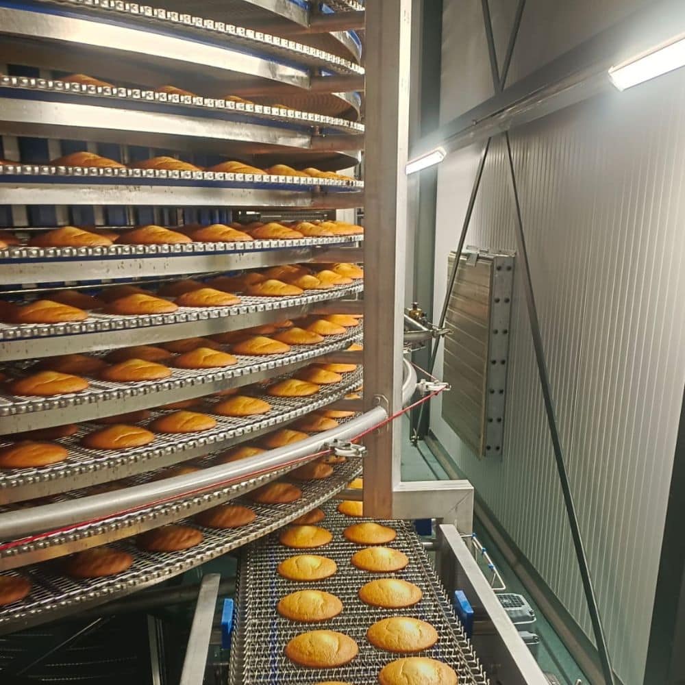 Voor deze nieuwe lijn waren drie koelspiralen nodig om producten direct na het bakproces terug te koelen. De uitdaging zat niet alleen in de technische eisen, maar vooral in de beperkte ruimte op de locatie en de strakke montagetijd. Een oplossing met een compacte footprint en een feilloze planning was dus essentieel.